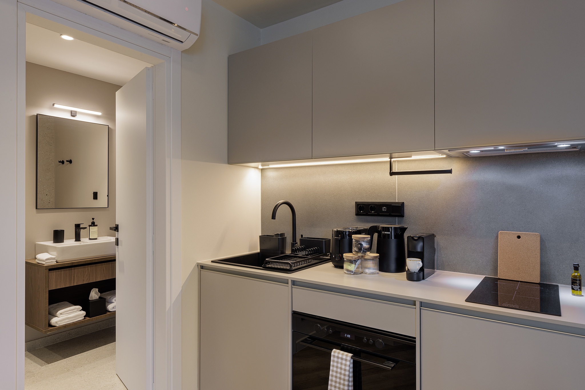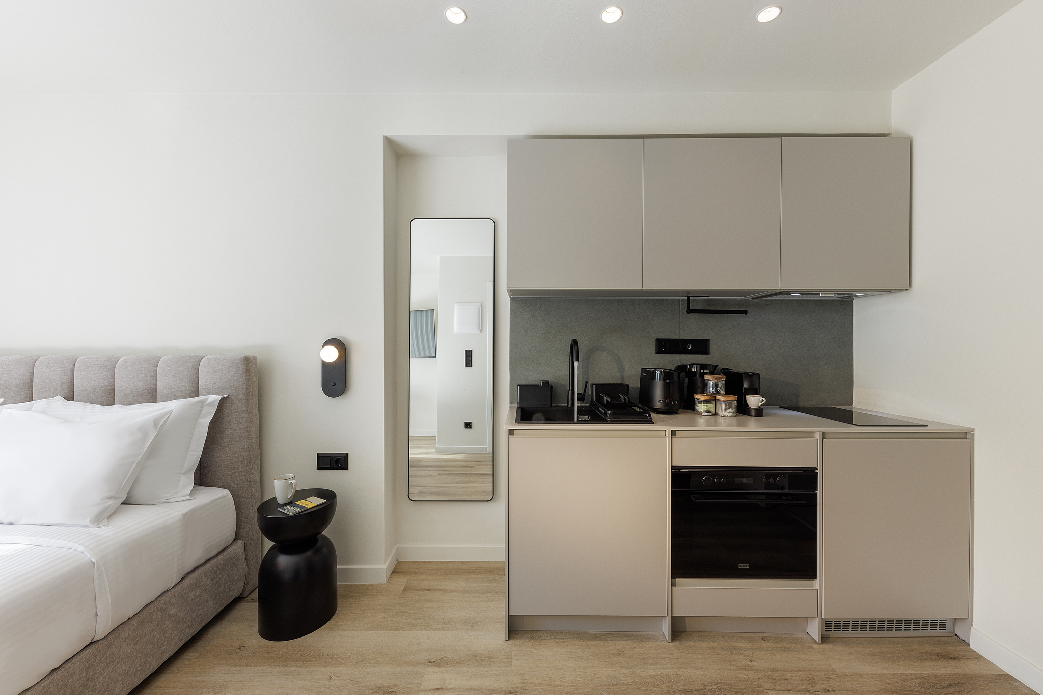 master Trevi offers 27 modern apartments, some with private balconies and others with spacious terraces for enjoying city views. The minimalist, Scandinavian-inspired design creates a calm and contemporary atmosphere.
