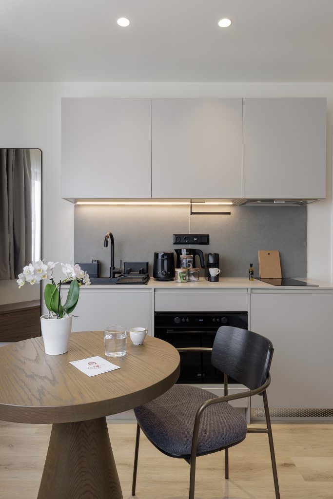 The Studio with Sofa Bed at master Plaka Athens offers a spacious and versatile stay, accommodating up to four guests. With 30 sqm of thoughtfully designed space, this apartment showcases a modern minimalist aesthetic, featuring neutral tones and practical elements that enhance comfort and functionality.