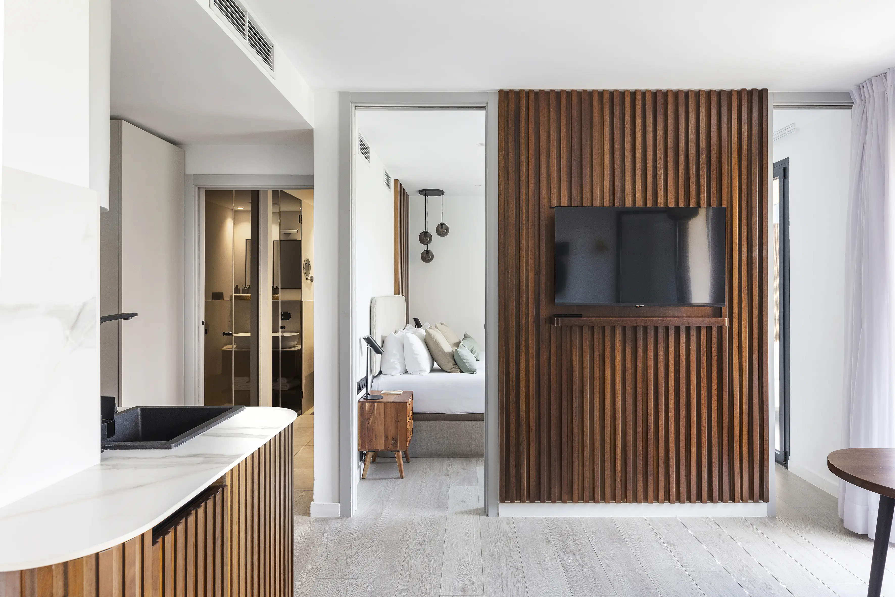 Designed for togetherness without sacrificing privacy, this 81 m² Family Two-Bedroom Apartment at master La Rambla brings two connected spaces into one, a bright Studio with Balcony and a serene Interior One-Bedroom Apartment. It’s an ideal setup for families or small groups who want both shared moments and personal space.