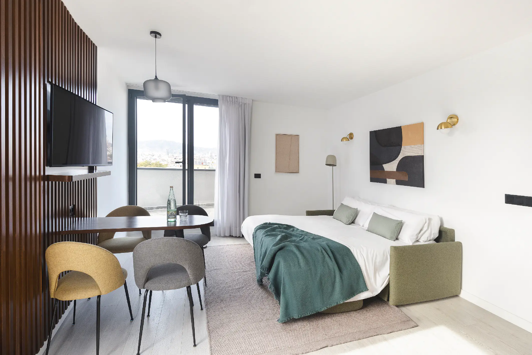 From studios with balconies to spacious two-bedroom penthouses, each apartment is designed for comfort, ease, and a touch of city style. Whether you’re traveling solo, as a couple, or with friends, find the space that fits your stay, right in the heart of Barcelona.