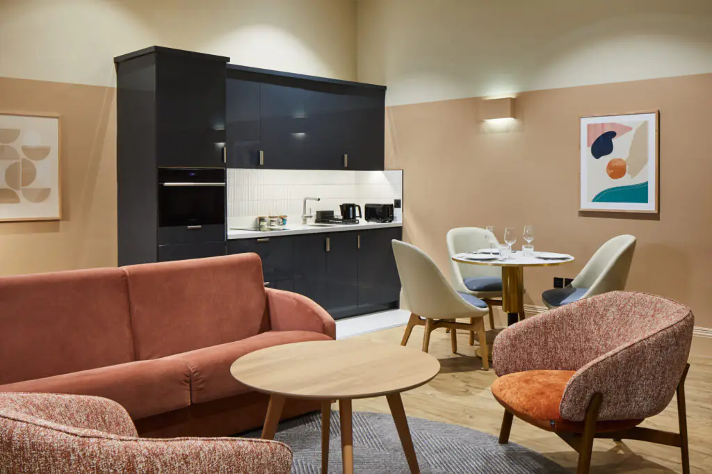The property features 27 modern serviced apartments, each designed with both style and functionality in mind. Guests enjoy fully fitted kitchens, contemporary bathrooms, and amenities like Wi-Fi, TVs, and comfort heating and cooling systems.