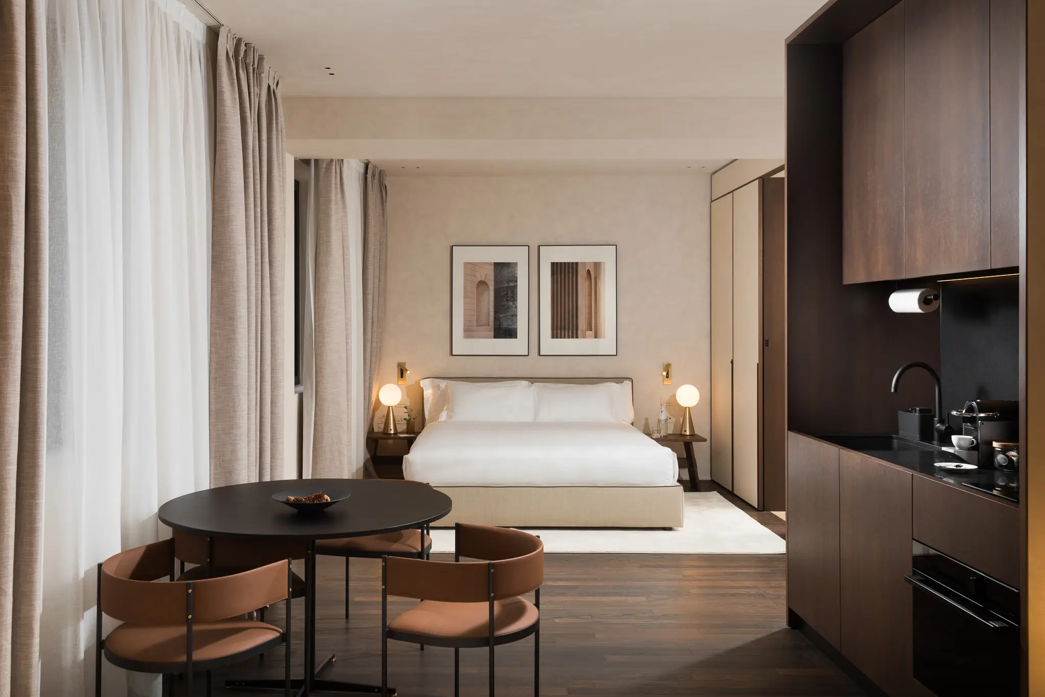 master Trevi offers 27 modern apartments, some with private balconies and others with spacious terraces for enjoying city views. The minimalist, Scandinavian-inspired design creates a calm and contemporary atmosphere.