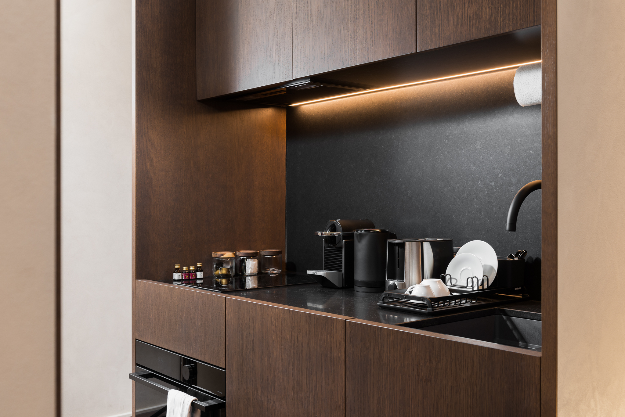 master Trevi offers 27 modern apartments, some with private balconies and others with spacious terraces for enjoying city views. The minimalist, Scandinavian-inspired design creates a calm and contemporary atmosphere.