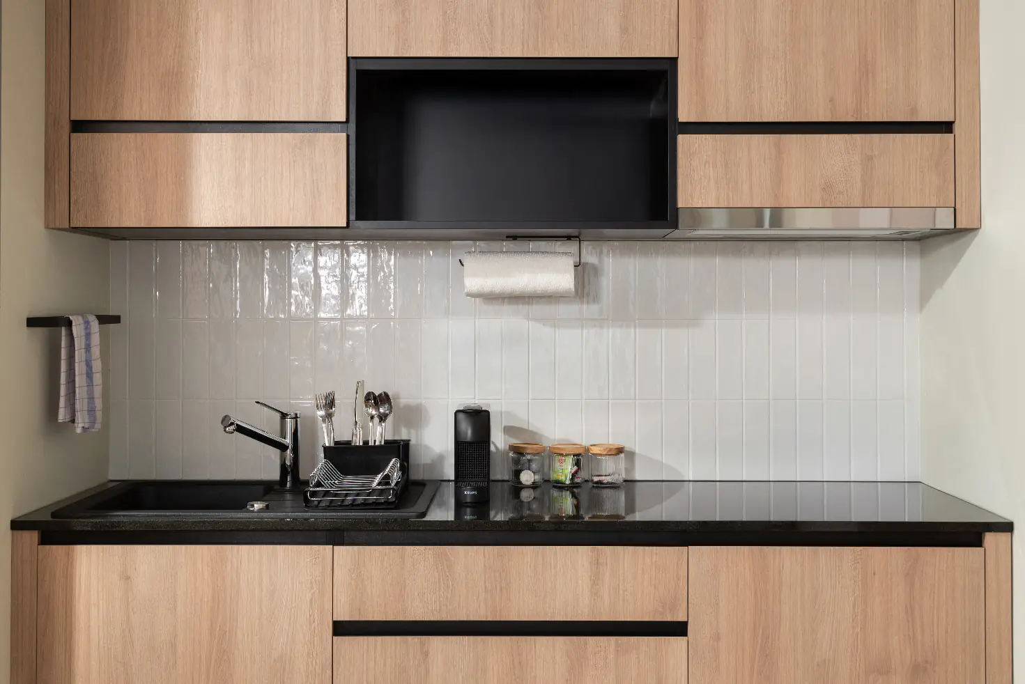 Step into the Deluxe Studio at master Mirabell Salzburg Serviced Apartments, where sophistication meets style in a luxurious 24-square-meter space. Perfect for up to two guests, this compact yet cozy studio is designed to be your intimate retreat in Salzburg. Read more This beautifully crafted studio is flooded with natural light, creating a warm and inviting atmosphere. Every detail is thoughtfully arranged to enhance your stay, from the coffee machine for your morning brew to the kitchen equipped with a half refrigerator. Whether you’re visiting Salzburg for business or pleasure, the Deluxe Studio offers a refined and practical space to call home. Its prime location makes exploring the city’s charming attractions a breeze, while the studio itself provides a peaceful haven after a day of sightseeing. Discover the ultimate blend of comfort and elegance in the Deluxe Studio at master Mirabell Salzburg Serviced Apartments. Book your stay today and start your unforgettable Salzburg adventure. *If you’re seeking an extra luxurious experience, please visit our Penthouse page. Read Less