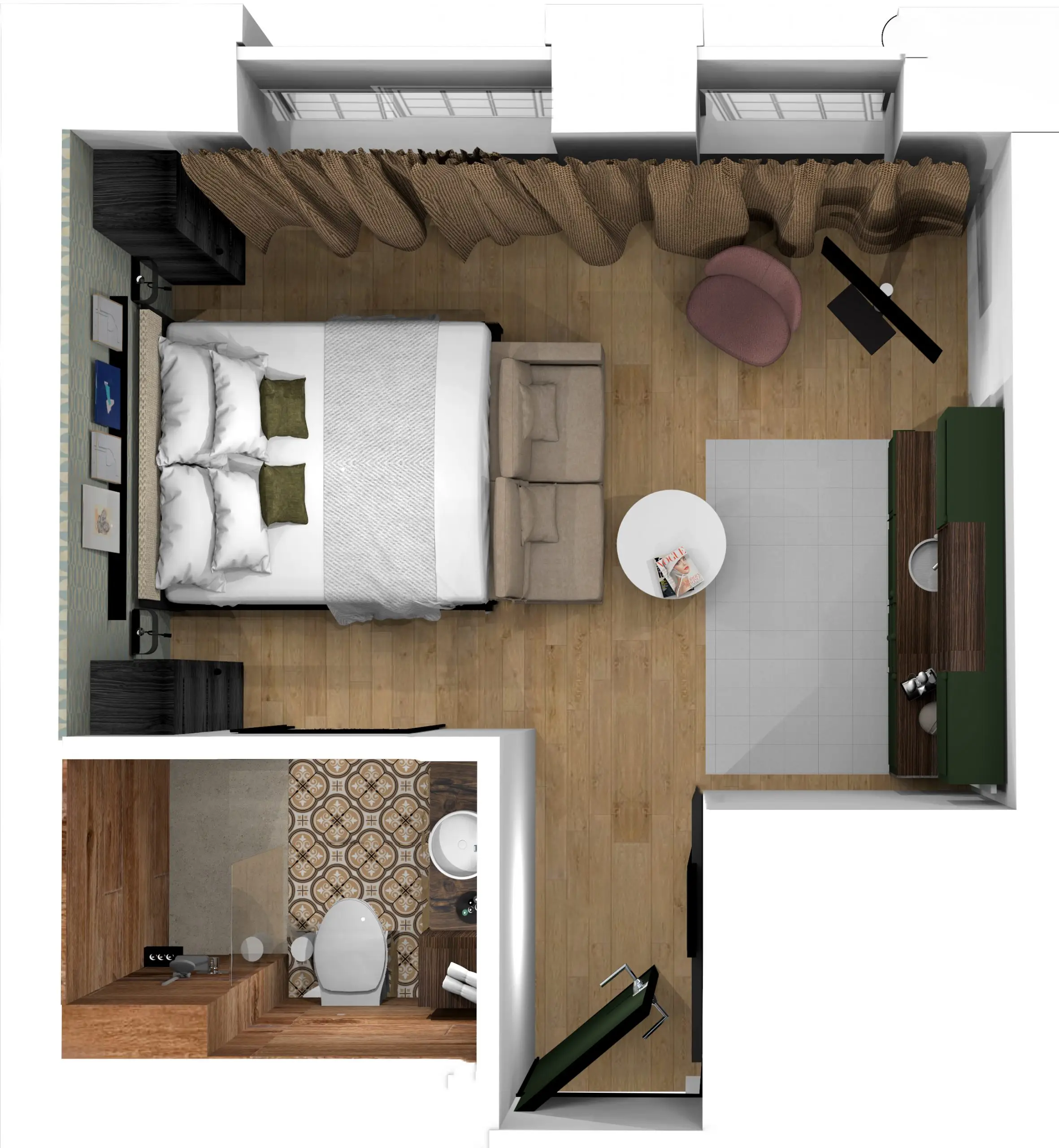 Cozy up in our Studio Apartment at master Mirabell, your perfect hideaway in the heart of the city. With its 24 sq. m. of comfort, this compact yet inviting space offers an espresso machine, half-size refrigerator, and dishwasher. Ideal for up to 2 guests, it provides all the amenities you need for a convenient and enjoyable stay. The exquisitely-tiled bathroom features large, soft towels and hotel-standard amenities. Experience the harmony of comfort and functionality in our Studio Apartment, where entertainment and connectivity are at your fingertips.