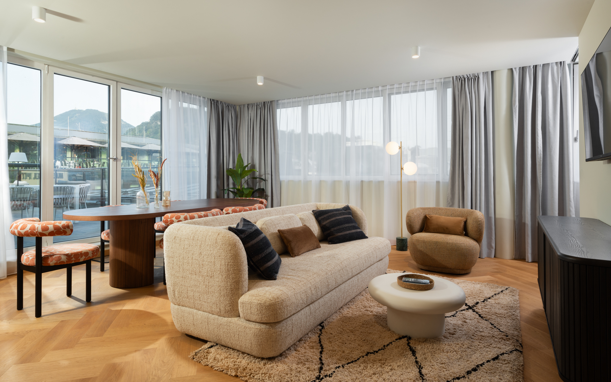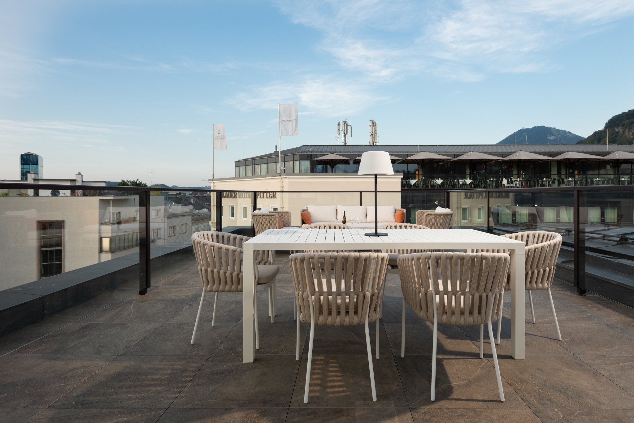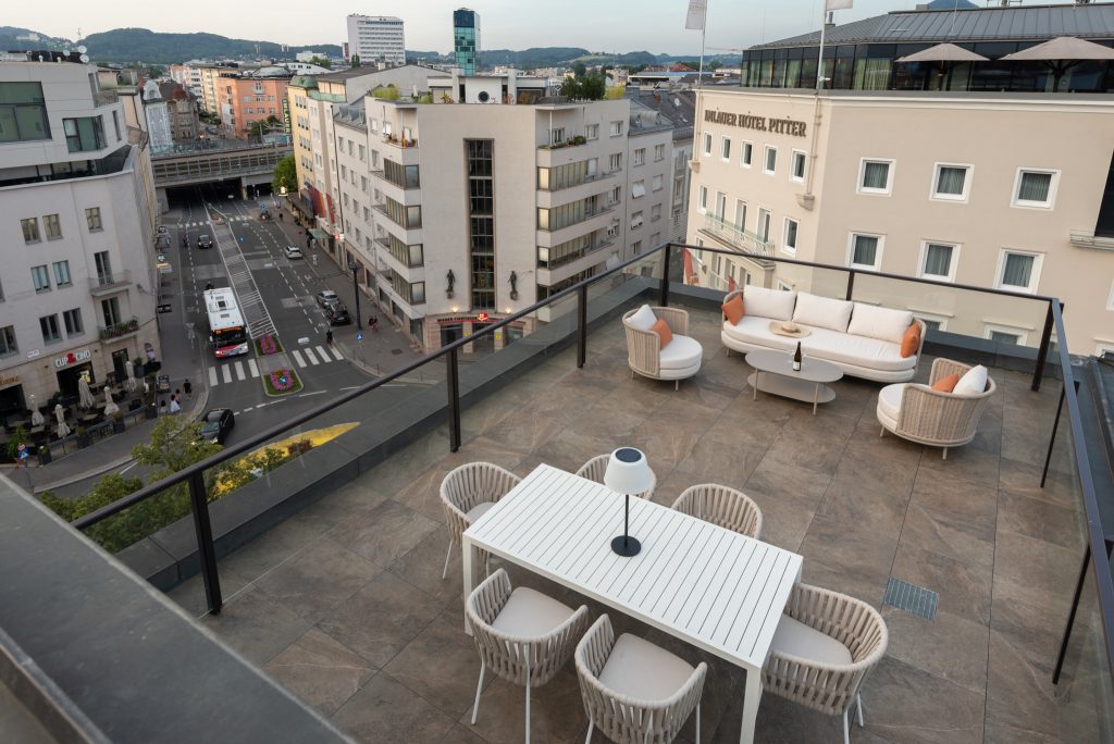 Step into the Three Bedroom Penthouse with Terrace at master Mirabell Salzburg Serviced Apartments, an exquisite and expansive retreat designed to offer luxury and comfort. Spanning 100 square meters, this top choice penthouse accommodates up to six guests, providing ample space for a truly unforgettable stay in Salzburg. Read more From the moment you enter, you’ll be greeted by an abundance of natural light that enhances the open and airy living spaces. The highlight of this penthouse is the expansive terrace, offering breathtaking views of Salzburg—perfect for al fresco dining or simply unwinding in the fresh air. Every detail of the penthouse is meticulously curated to exceed your expectations. The equipped kitchen, complete with modern appliances and utensils, allows you to prepare gourmet meals with ease. After a day of exploring the city, retreat to the comfort of the elegantly furnished bedrooms, each designed to provide a peaceful haven for relaxation. Ideal for family getaways or gatherings with friends, the Three Bedroom Penthouse combines sophistication and style, ensuring that every moment of your stay is memorable. Experience the pinnacle of luxury living in our Three Bedroom Penthouse with Terrace at master Mirabell Salzburg Serviced Apartments. Reserve your stay today and elevate your experience in the heart of Salzburg. Read Less