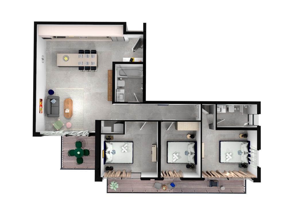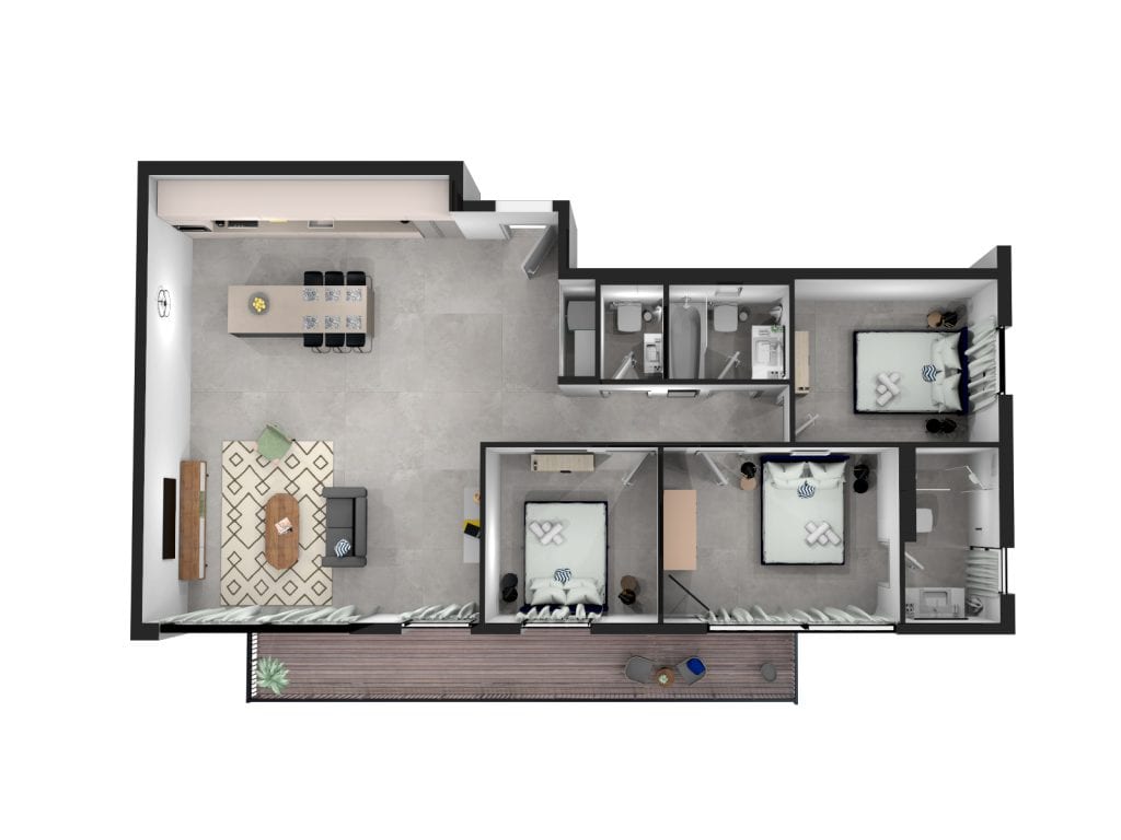 This cozy, 130 sq. m, three-bedroom serviced apartment accommodates up to 8 guests. Whether you’re on a long family vacation or an extended business trip, this airconditioned unit has got you covered. Let the abundant natural light flowing in from the large windows and great city views embrace you. The combination of contemporary decor and select furnishings create a warm and inviting homey atmosphere.