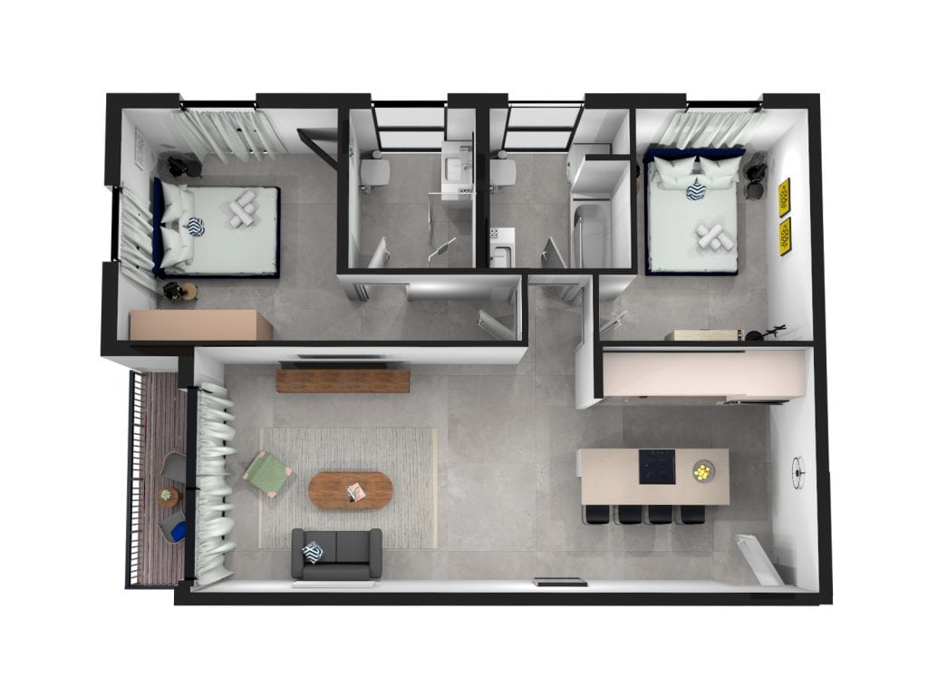 Work efficiently and have fun too – you’ll enjoy blazing fast Wi-Fi as well as 43” and 55” Smart TVs. Other amenities include in-room laundry, a safe box, ironing equipment, and a washer and dryer.