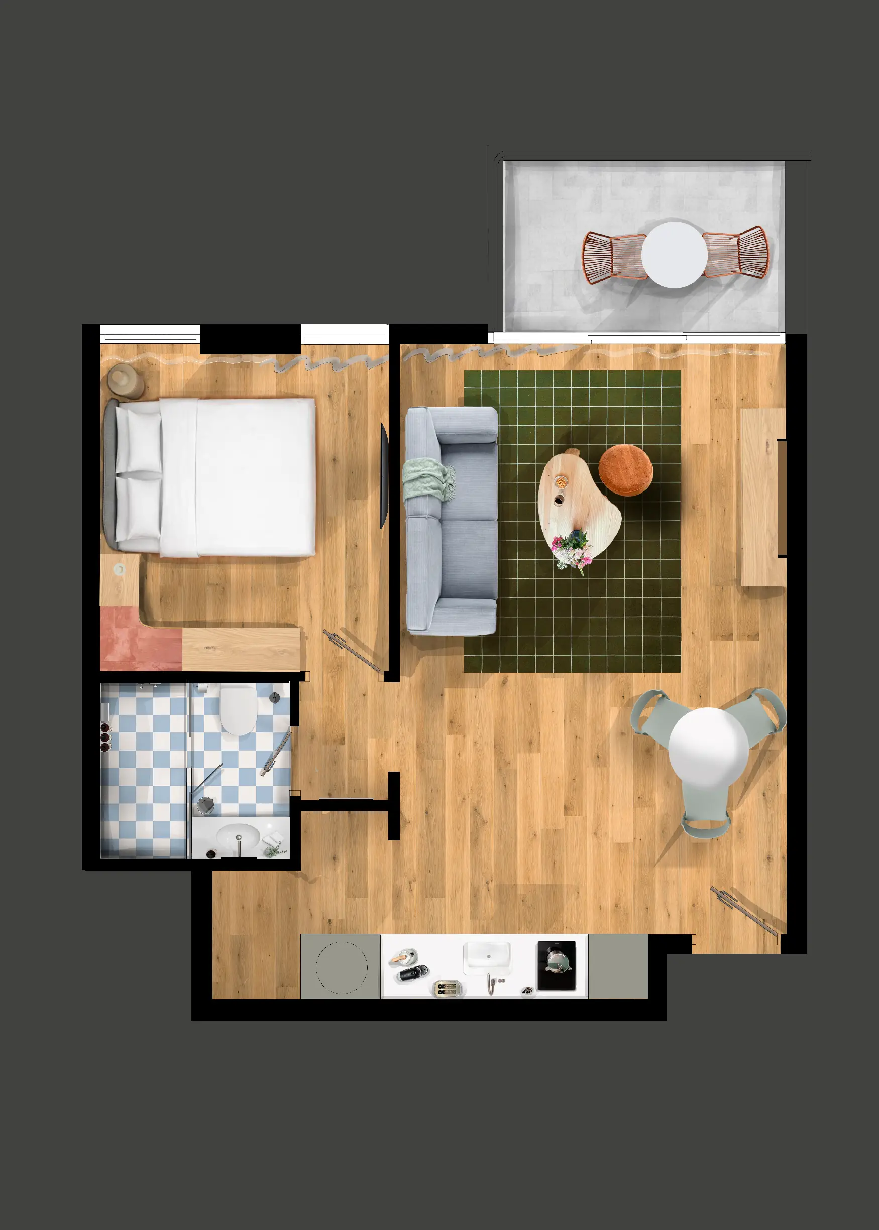 Unwind in our 43-square-meter One-Bedroom Apartment with a Balcony, accommodating up to 4 guests. The private balcony is the perfect spot to relax and take in city views. With a cozy living room and a fully equipped kitchen, it’s ideal for both short and extended stays. Enjoy modern amenities like air conditioning, a flat-screen TV, free Wi-Fi, as well as bath essentials, coffee facilities, a washing machine, and a dryer for added convenience.