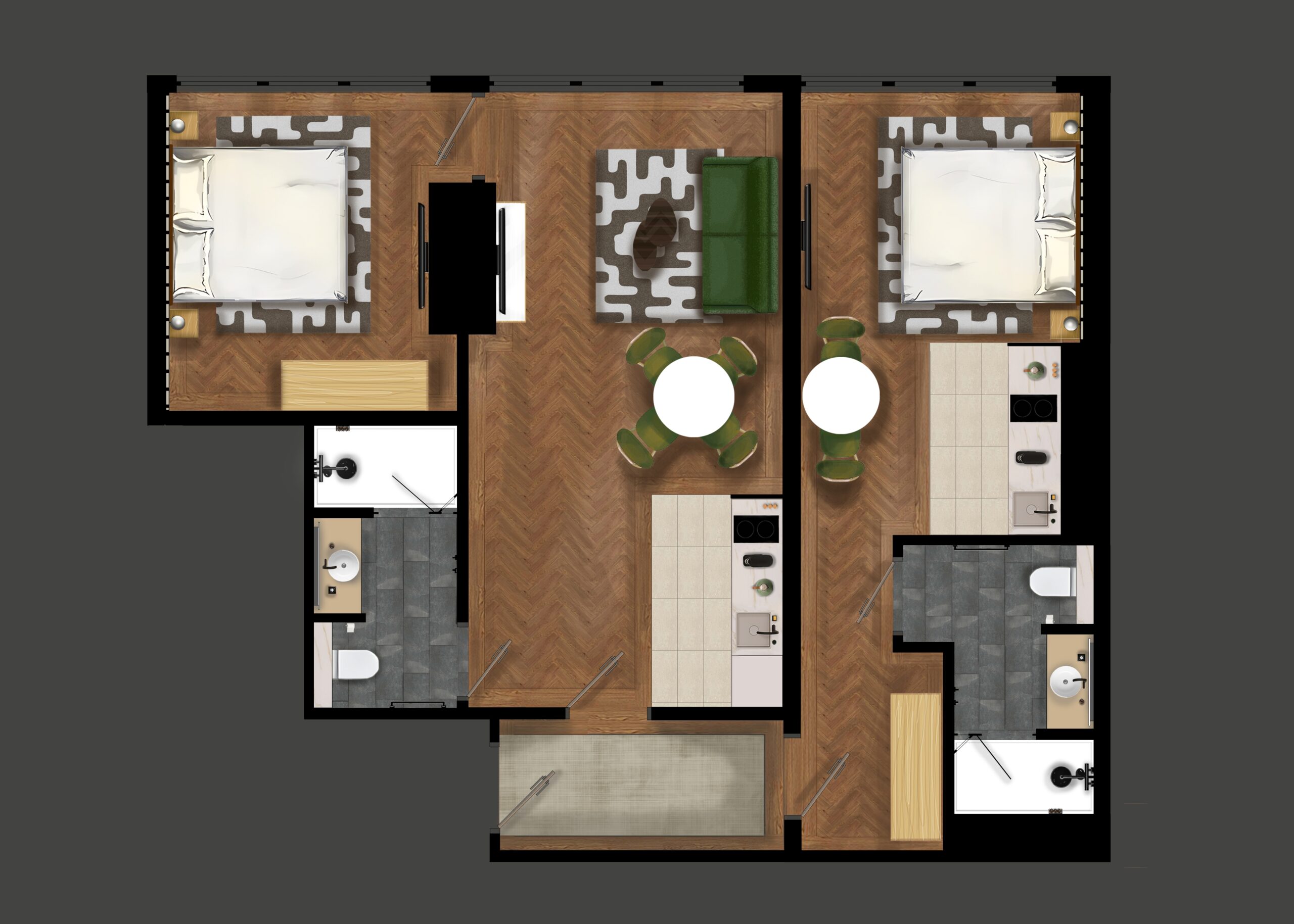 Spacious, comfortable, and designed with families in mind, this 70 sqm Family two bedroom Apartment at master Wola Serviced Apartments offers everything you need to enjoy a relaxed stay in Warsaw. With space for up to six guests and two full bathrooms, it’s ideal for families or small groups who value privacy and room to unwind.