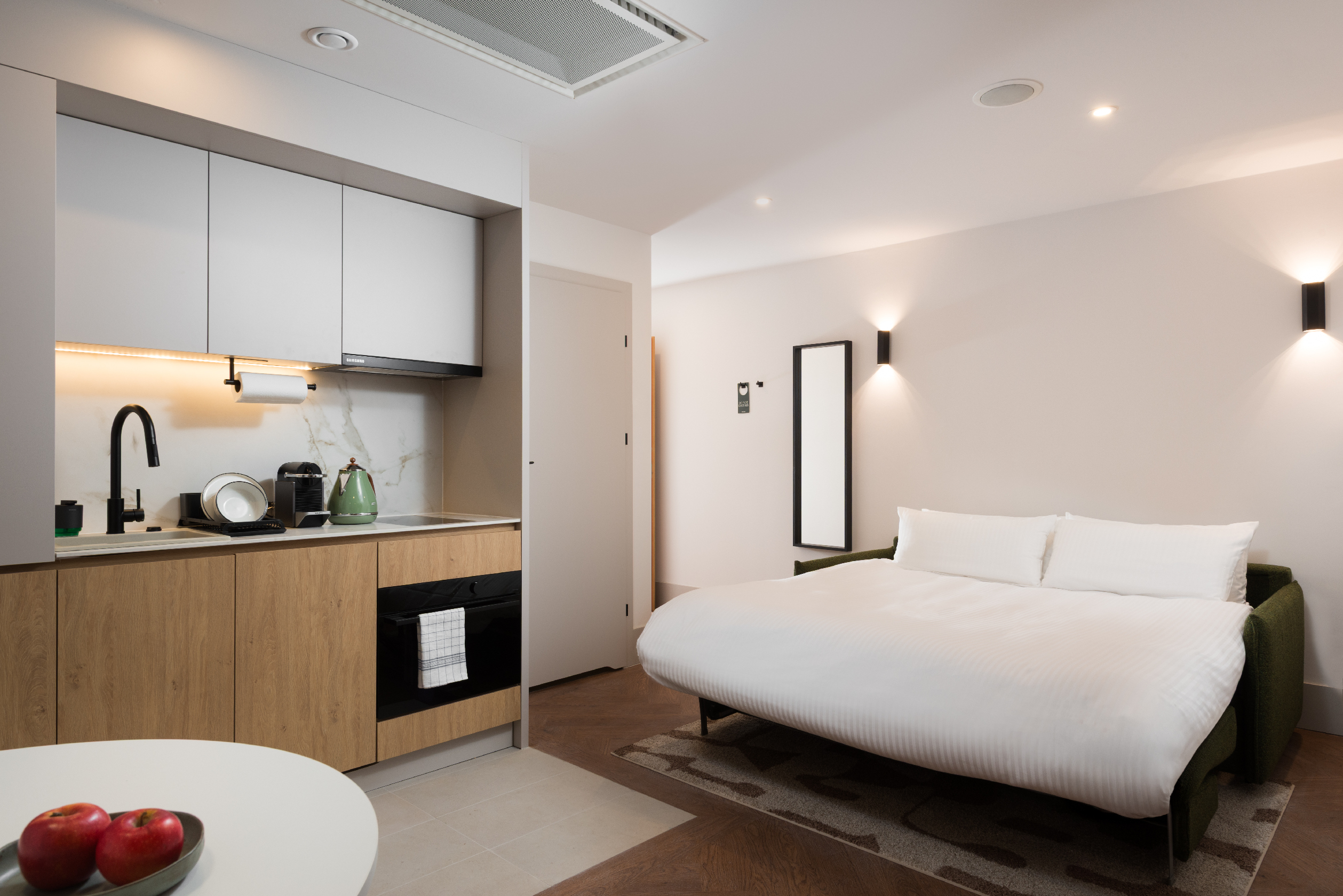 Discover 113 modern serviced apartments crafted for effortless city living at master Wola. Choose from smart studios up to spacious three-bedroom homes, all featuring a calm, minimalist style with warm, natural finishes. Designed to give you space to live life your way, work, unwind, cook, and recharge. Every apartment feels instantly welcoming the moment you arrive.