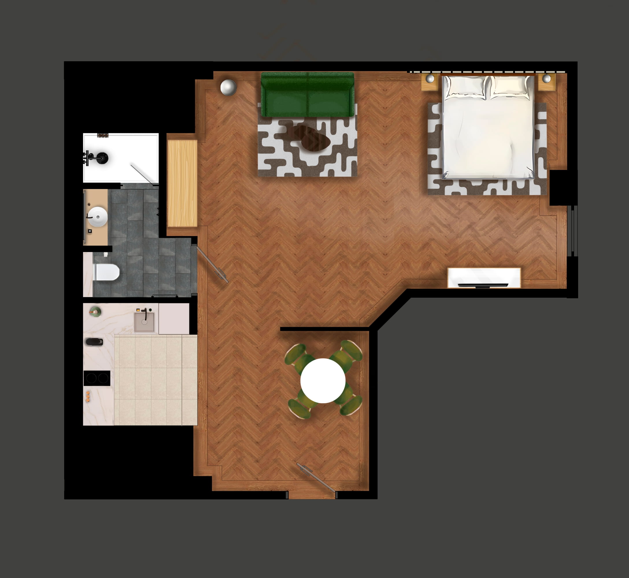 Designed for flexibility and comfort, this 38 sqm studio apartment at master Wola Serviced Apartments offers smart design and generous space for up to four guests. Ideal for couples, friends, or families seeking a stylish base in Warsaw.