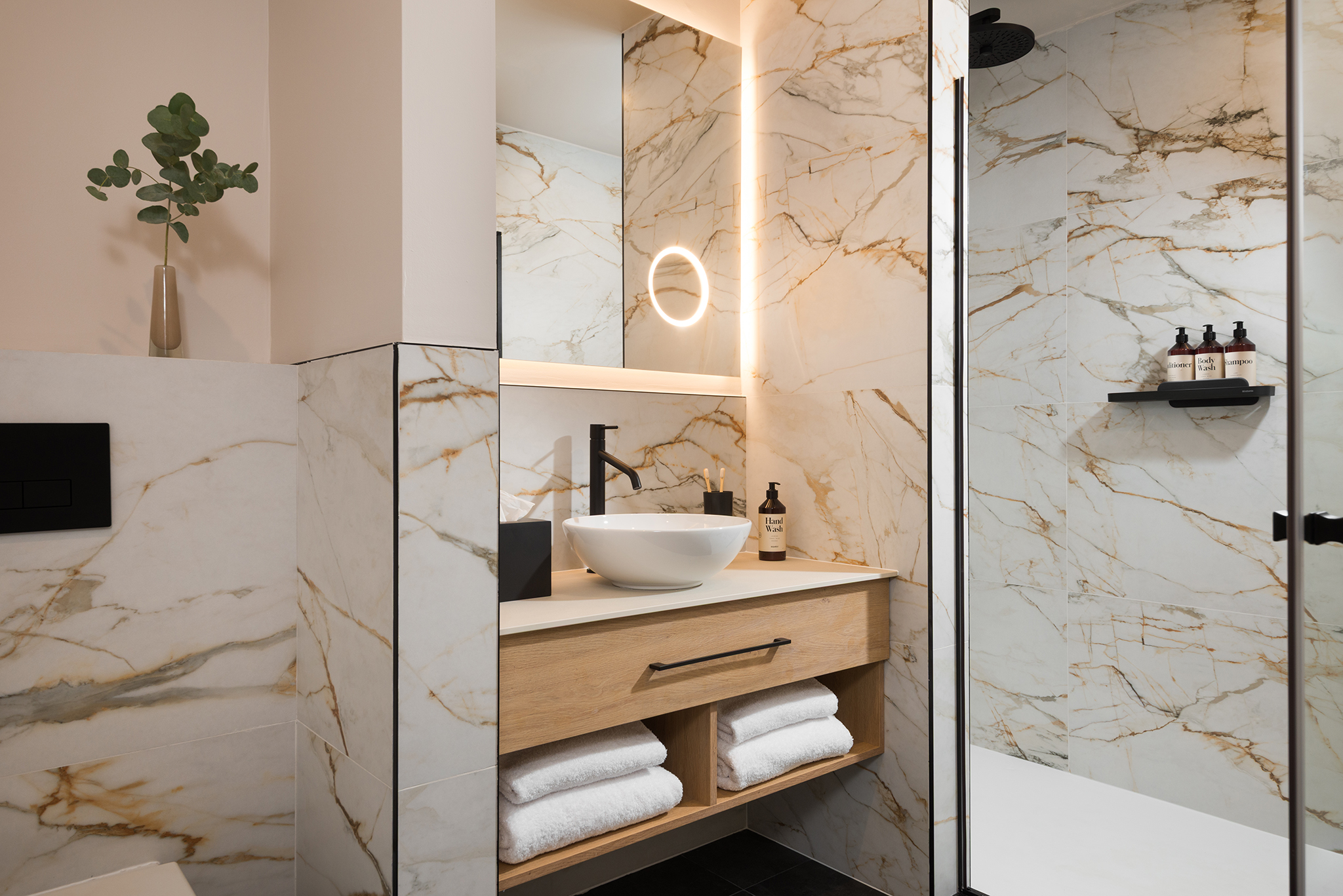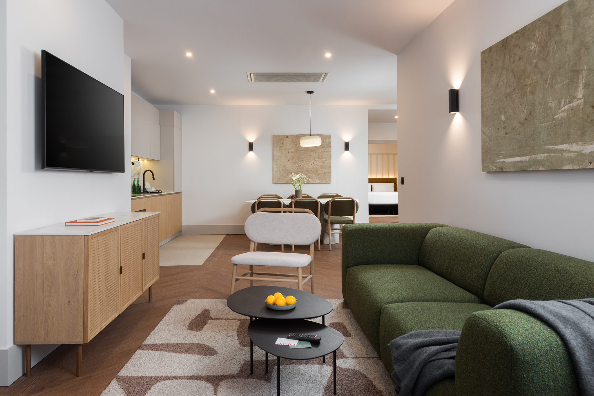 Enjoy the convenience of an equipped kitchen with dishwasher, microwave oven, and refrigerator, plus your own washing machine and dryer right in the apartment. Other highlights include free high speed Wi Fi, Smart TV with Netflix, a walk in shower, toiletries, wardrobes, and an in room safebox—everything you need for a comfortable longer stay in the city.