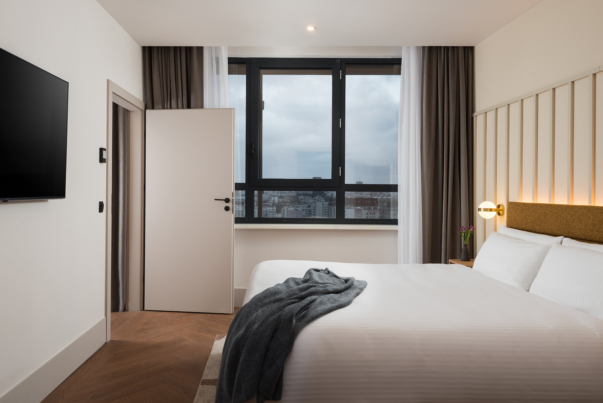Designed for groups and larger families, this 95 sqm three bedroom apartment at master Wola Serviced Apartments offers all the space you need to spread out, relax, and enjoy a seamless stay in Warsaw. With room for up to six guests, it combines practical comfort with contemporary style.