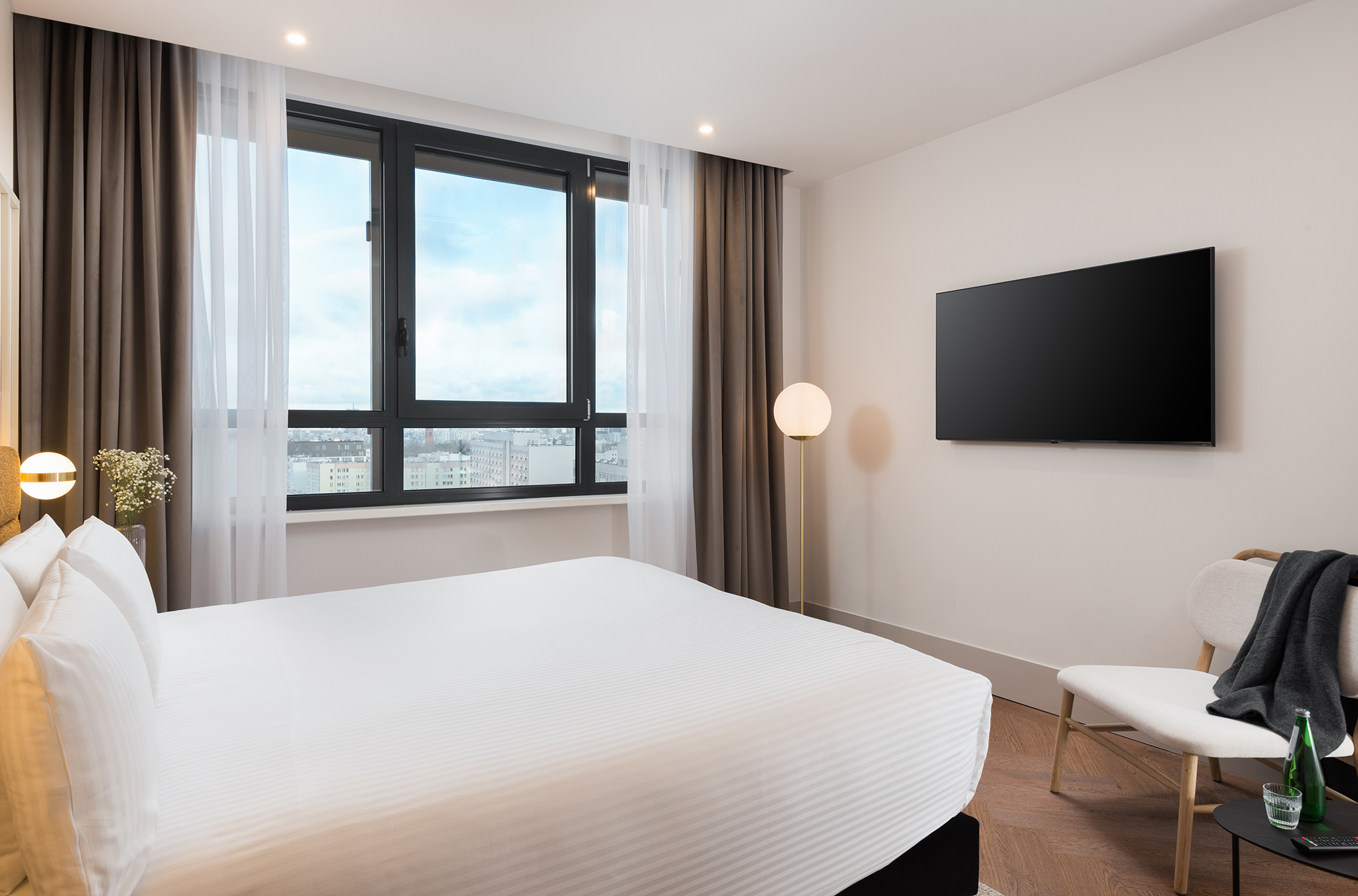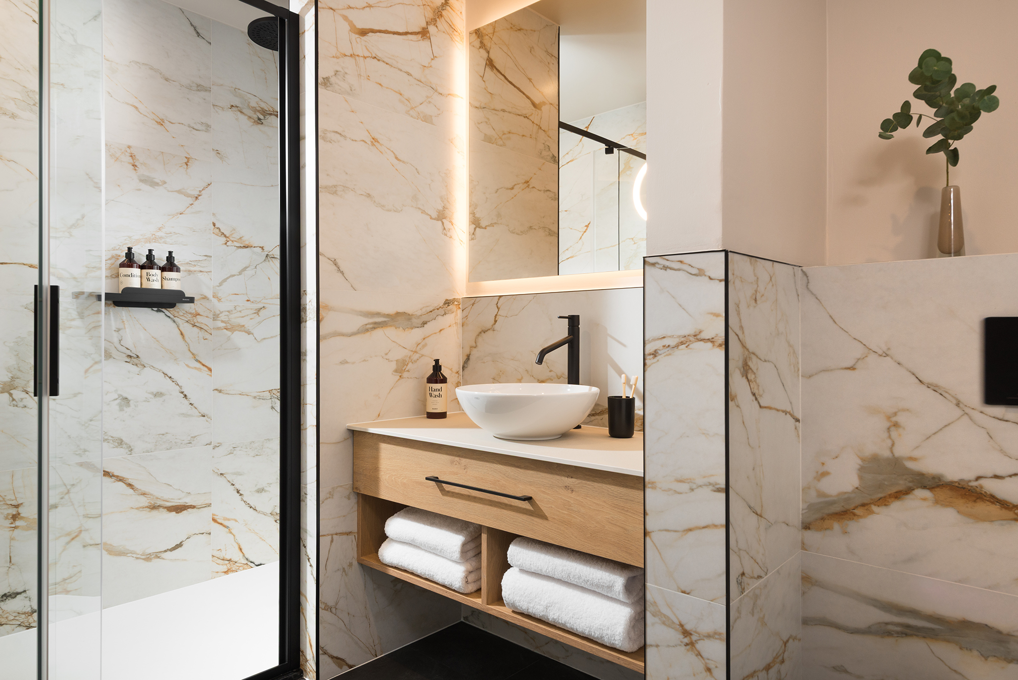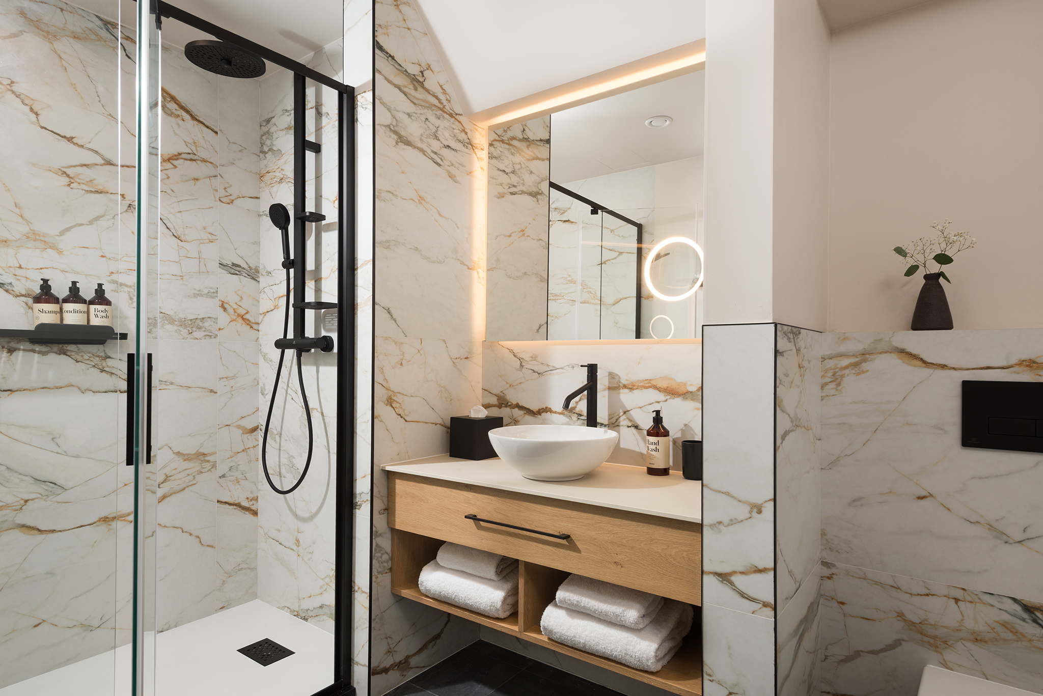 The equipped kitchen includes a dishwasher, microwave oven, and refrigerator, giving you the freedom to cook and eat in. Other essentials like Smart TV with Netflix, free high speed Wi Fi, wardrobes, in room safebox, and a walk in shower are all here to make your stay smooth and comfortable.